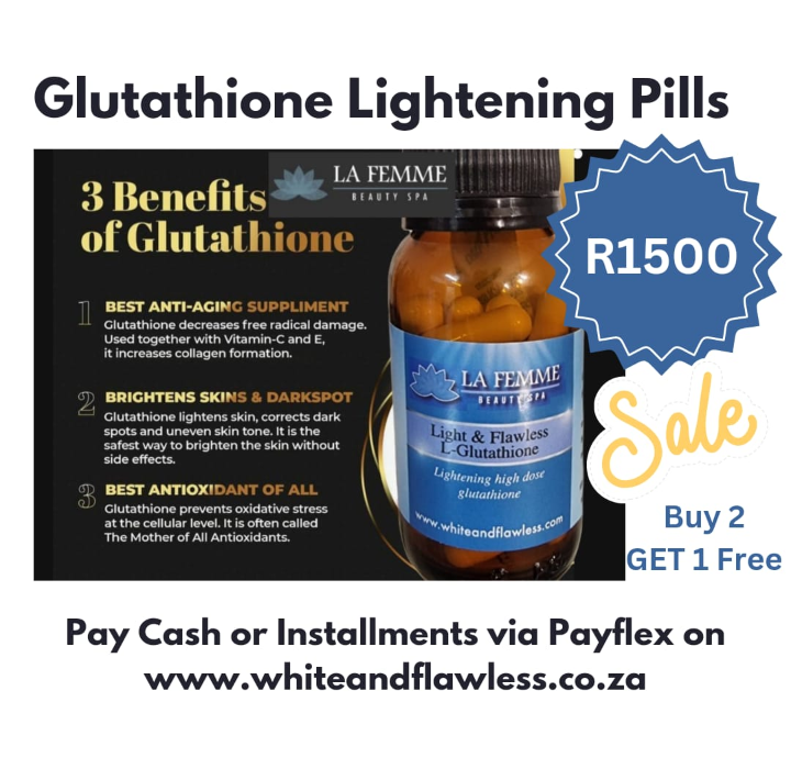 Our Glutathione Lightening Pills are designed to promote a brighter, more even skin tone while supporting overall skin health from within. Known as the “master antioxidant,” Glutathione helps fight free radicals, detoxify the body, and enhance skin clarity naturally.